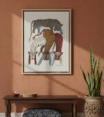 Immerse your space in the vibrant world of authentic Indian folk art with this striking, handmade Gond painting titled “Four Stylized Tigers.” This unique piece measures 11 x 15 inches, making it an ideal size for any wall.