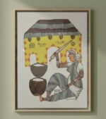Original Handmade Gond Art: ‘Woman Grinding Grain’ (11×15″)