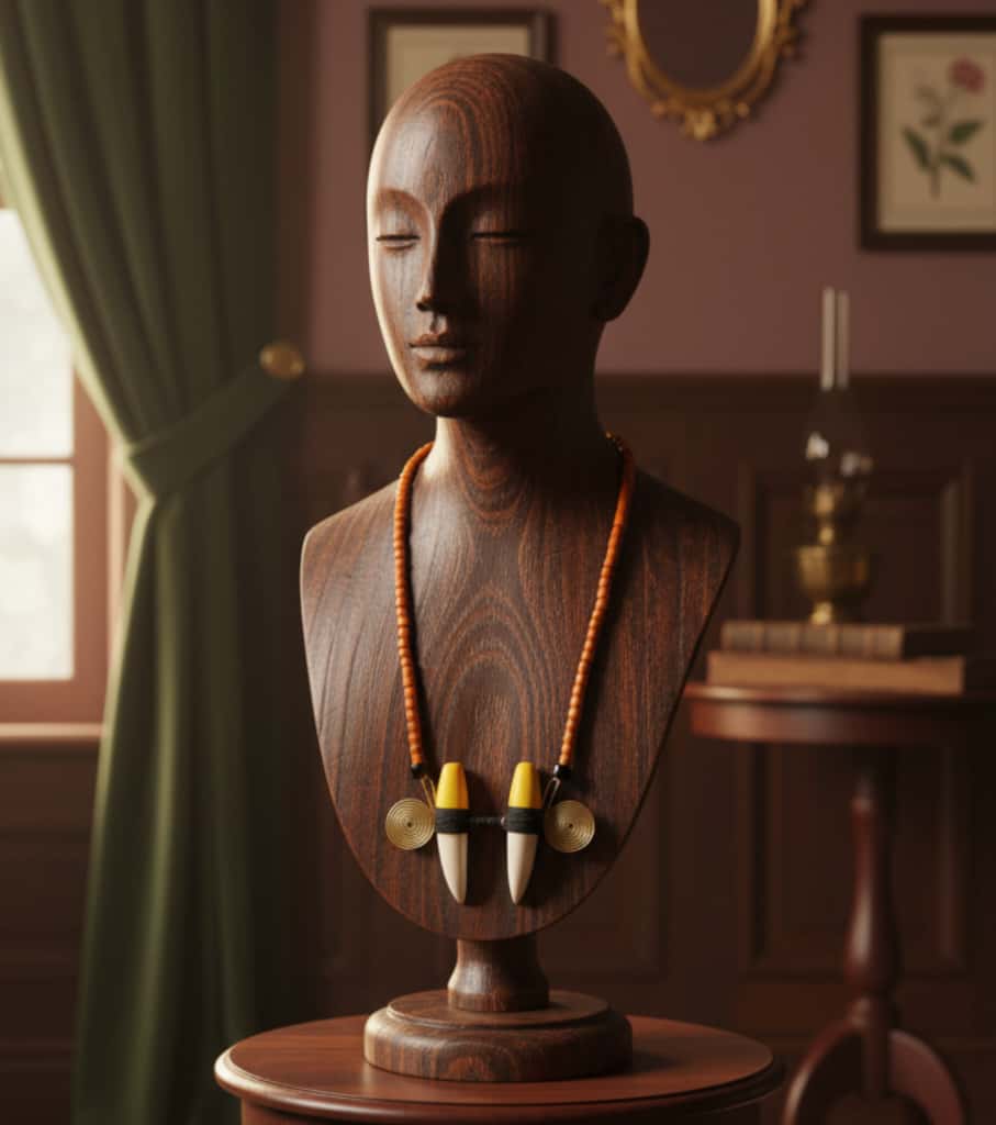Such warrior pendants were traditionally suspended from larger, often red, beaded necklaces. This piece encapsulates the bravery and vitality central to Naga heritage. Owning this necklace means acquiring a unique authentic Assam product in the broader context of Northeast Indian tribal art, a conversation starter that tells a story of tradition, courage, and rebirth. It’s an exceptional piece for collectors of tribal jewelry, cultural enthusiasts, or anyone seeking a powerful and meaningful accessory.