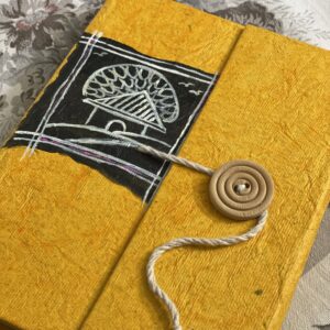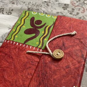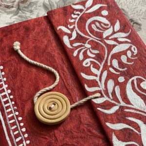 Crafted with love by Innocent Hands, this eco-friendly folder features hand-painted Baul calligraphy and a symbolic ektara motif, celebrating Bengal’s wandering mystics. Made from recycled handmade paper, this vibrant red folder includes a traditional button-and-thread closure.