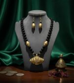 Classic Black Beads: The Dokra elements are strung on a strand of smooth, lustrous Black Beads, providing a powerful and sophisticated contrast that makes the metalwork truly stand out.