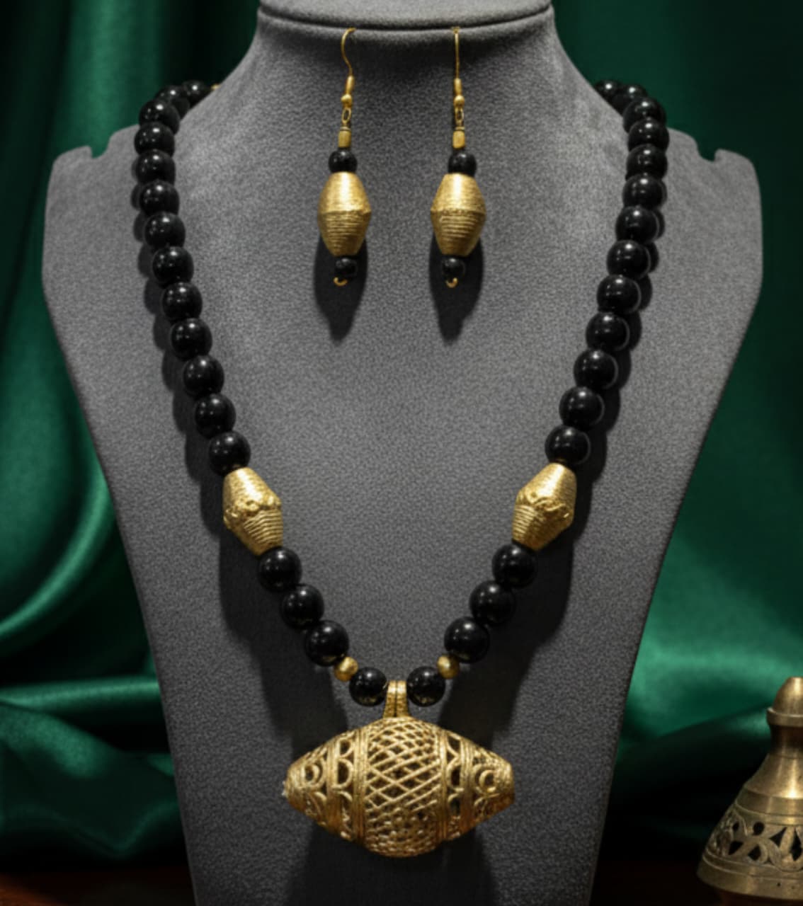 Authentic Dokra & Black Beaded Statement Necklace Set