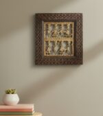 Material : Features a central Dokra brass set within a dark, possibly carved wooden frame