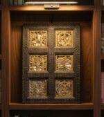 Material : Features a central Dokra brass set within a dark, possibly carved wooden frame