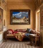 A vivid portrayal of Egypt’s timeless heritage, this frame captures camels in ornate saddles resting before the majestic pyramids of Cairo under a dramatic sky. A seamless blend of color, culture, and historical grandeur.