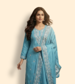 Be the first to review “Ethereal Sky Blue Embroidered Silk-Blend Suit Set – Premium Chikankari-Style Kurta with Dupatta | Designer Festive & Party Wear for Women”