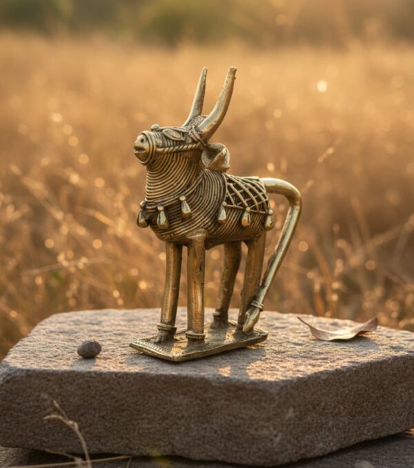 Embrace the artistry and tradition of India with this magnificent Dokra Brass Bull Showpiece – a true testament to enduring craftsmanship.