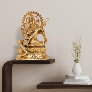 Goddess Saraswati Idol – Brushed Gold Metal Finish
