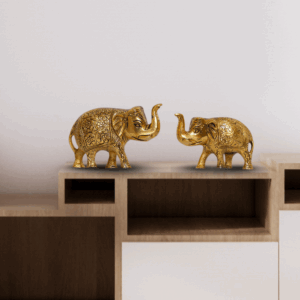 Elephant Pair in Brushed Brass – Handcrafted Decorative Set
