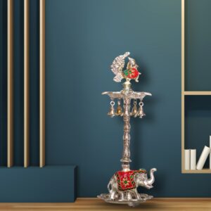 Elephant Diya Stand with Enamel Work in golden Alloy