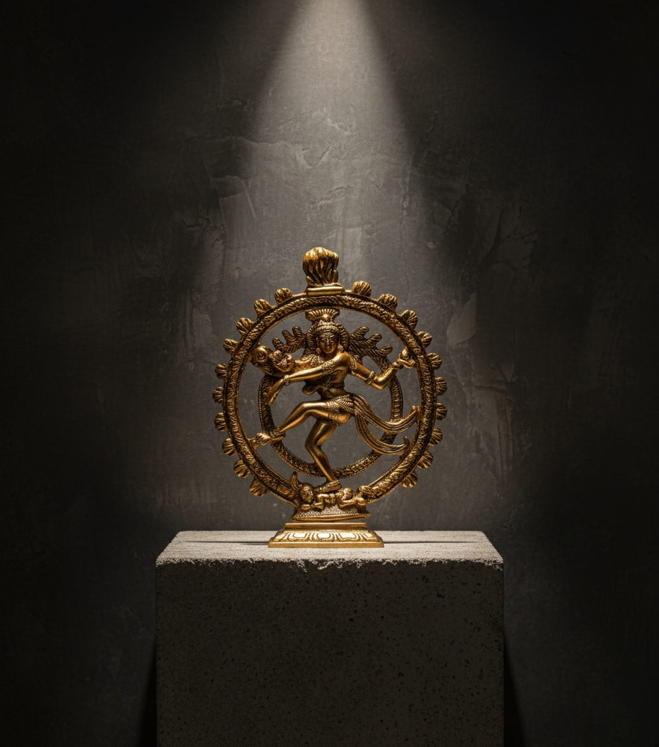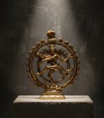 Embrace cosmic rhythm with the Lord Nataraja idol, cast in brushed metal and radiant gold. Lord Nataraja is depicted mid-dance within a detailed circular aureole, embodying creation, destruction, and the eternal cycle of life, time, and energy.