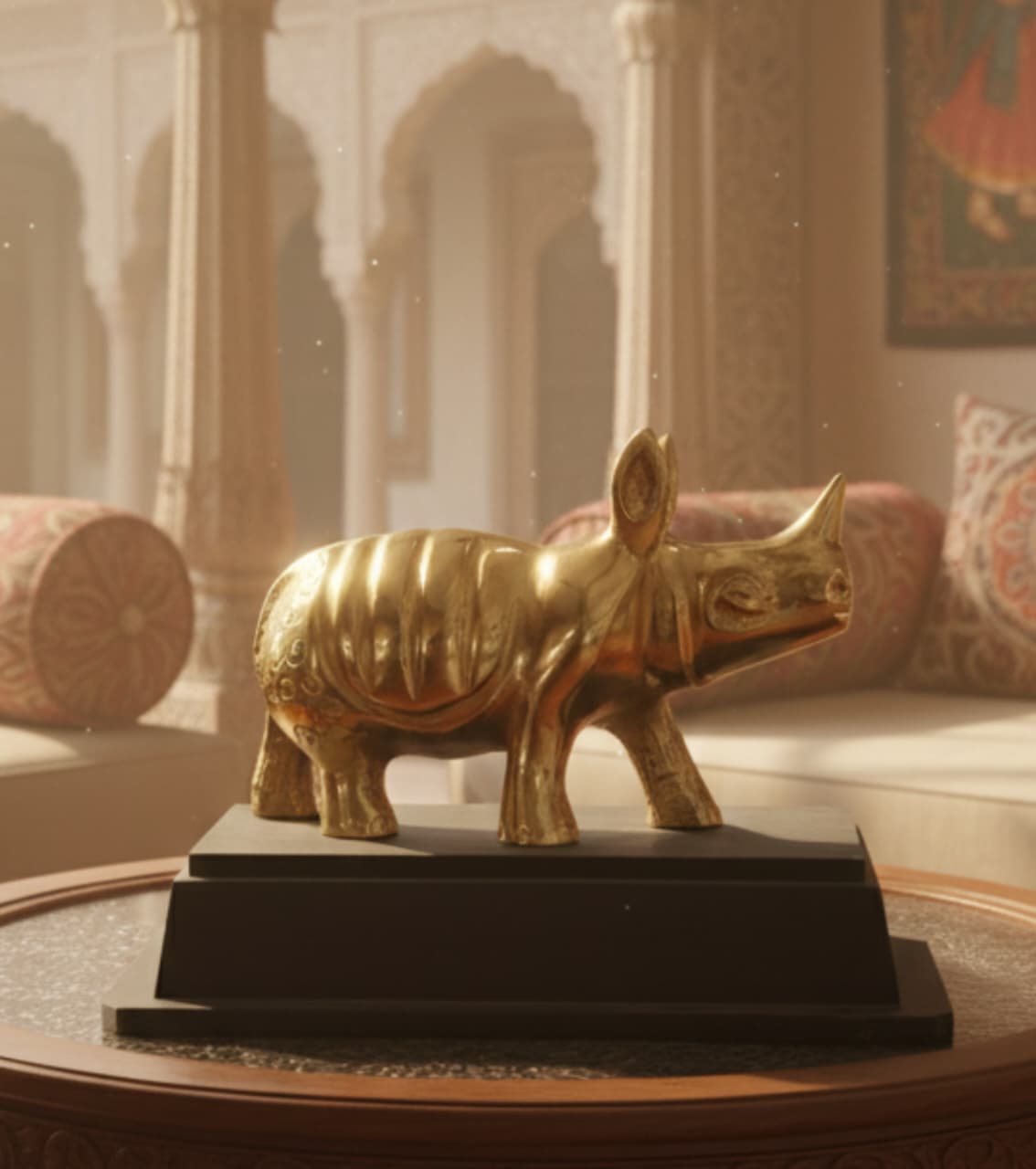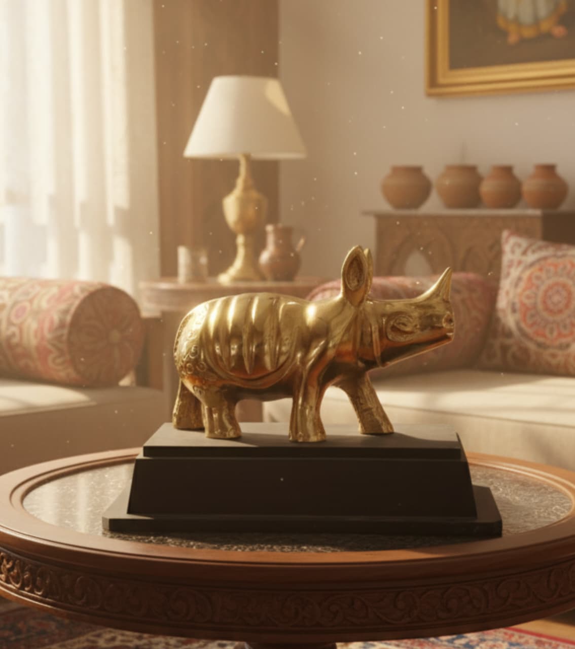 Metal Rhino – The Pride of Assam | Handcrafted 8-Inch Brass Rhino Figurine from Kaziranga