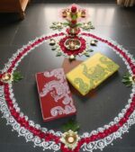 Elevate the sacred rituals of your Bengali wedding (Biye) with this luxurious pair of Hand-Painted Ceremonial Piris. These stools are a non-negotiable essential wedding accessory, as the bride and groom are traditionally required to sit on these Piris during various ceremonies.
