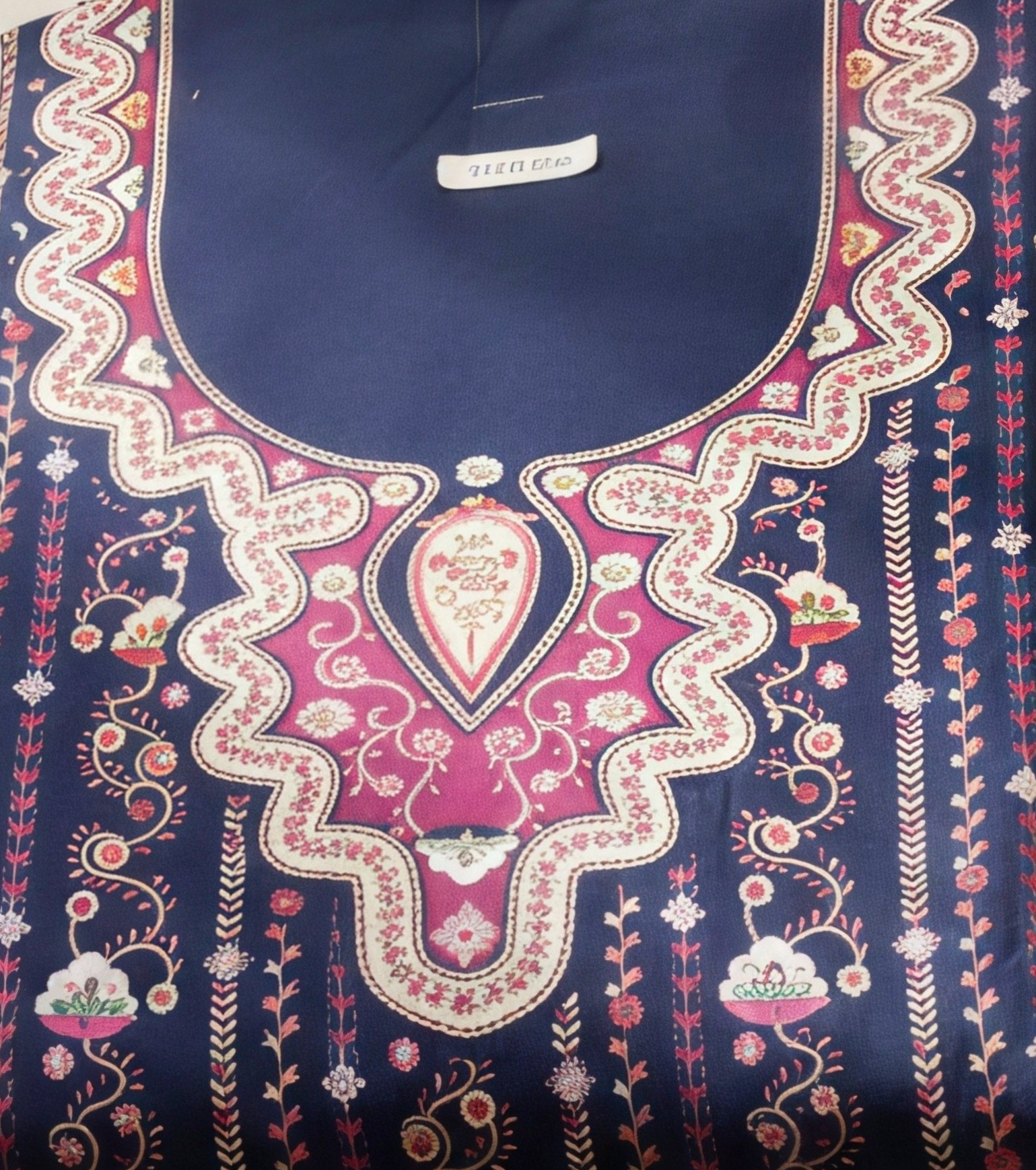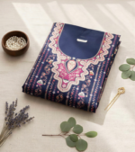 Step into a world of refined beauty with our Navy Blue Floral Unstitched Dress Material. Designed for the modern woman who cherishes traditional roots, this fabric set is a masterpiece of color and pattern.