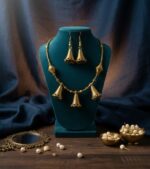 This stunning necklace set is an ode to the timeless art of Dokra (Dhokra), a non-ferrous metal casting craft practiced by tribal artisans. Every element, from the delicate beads to the iconic bell-shaped pendants, is individually shaped and cast by hand, guaranteeing a piece that is utterly unique and rich with cultural history.