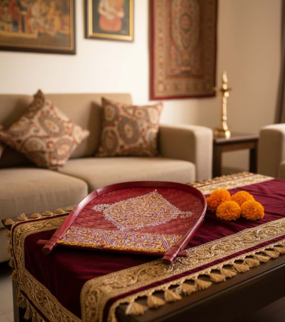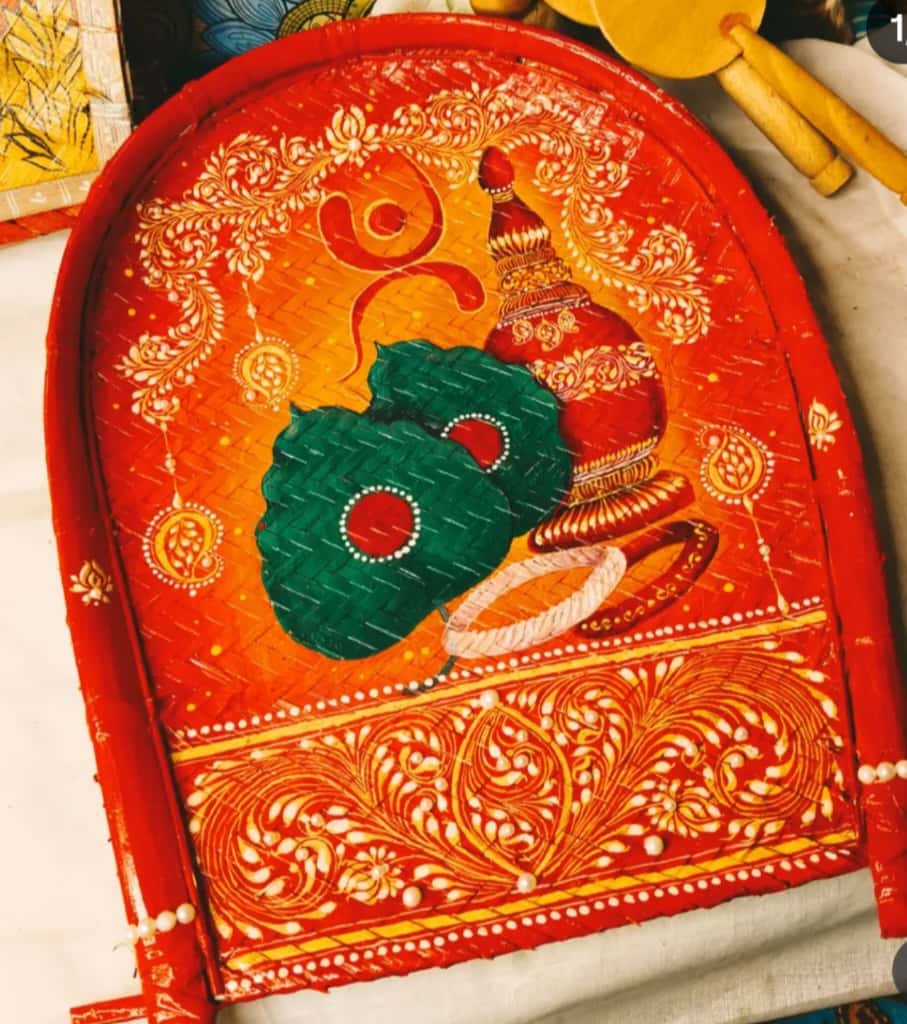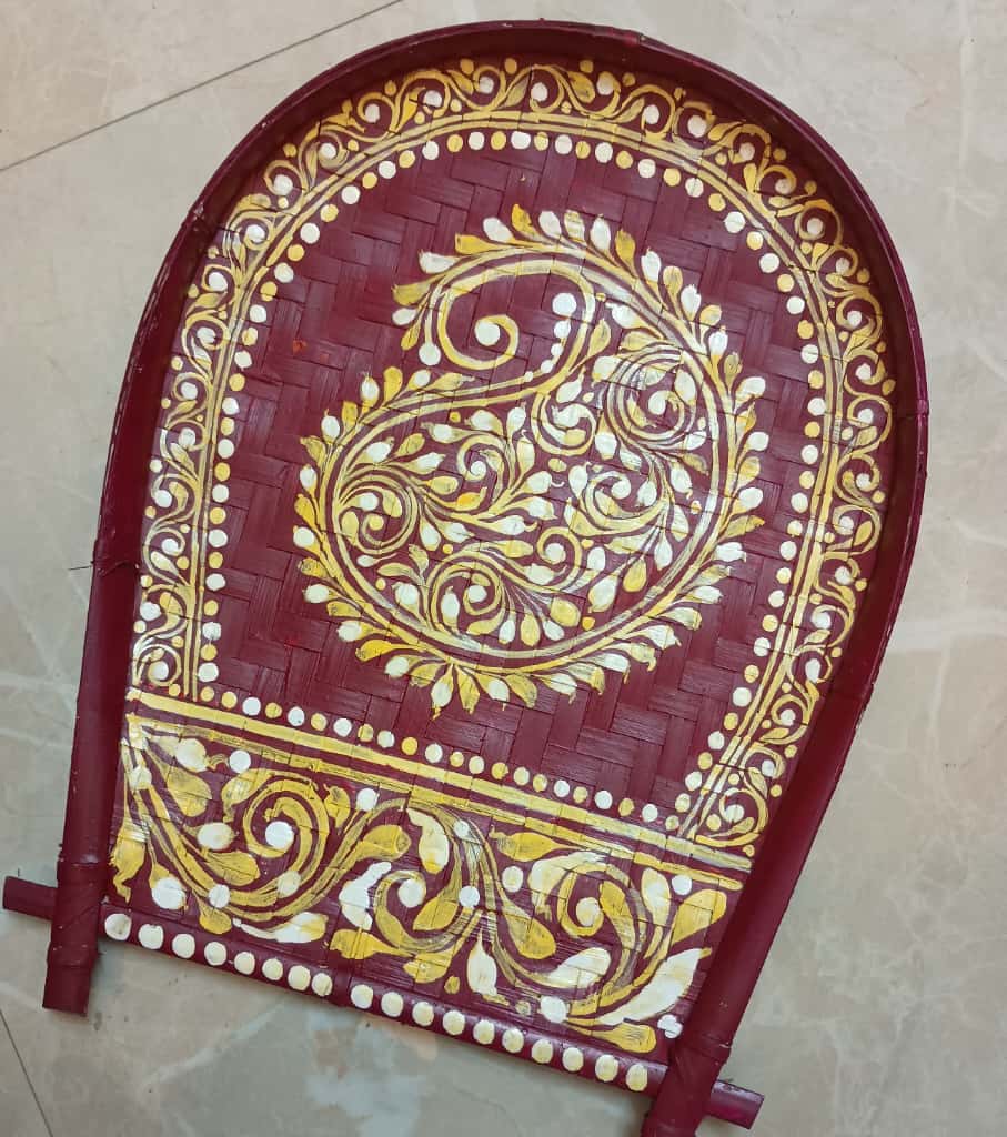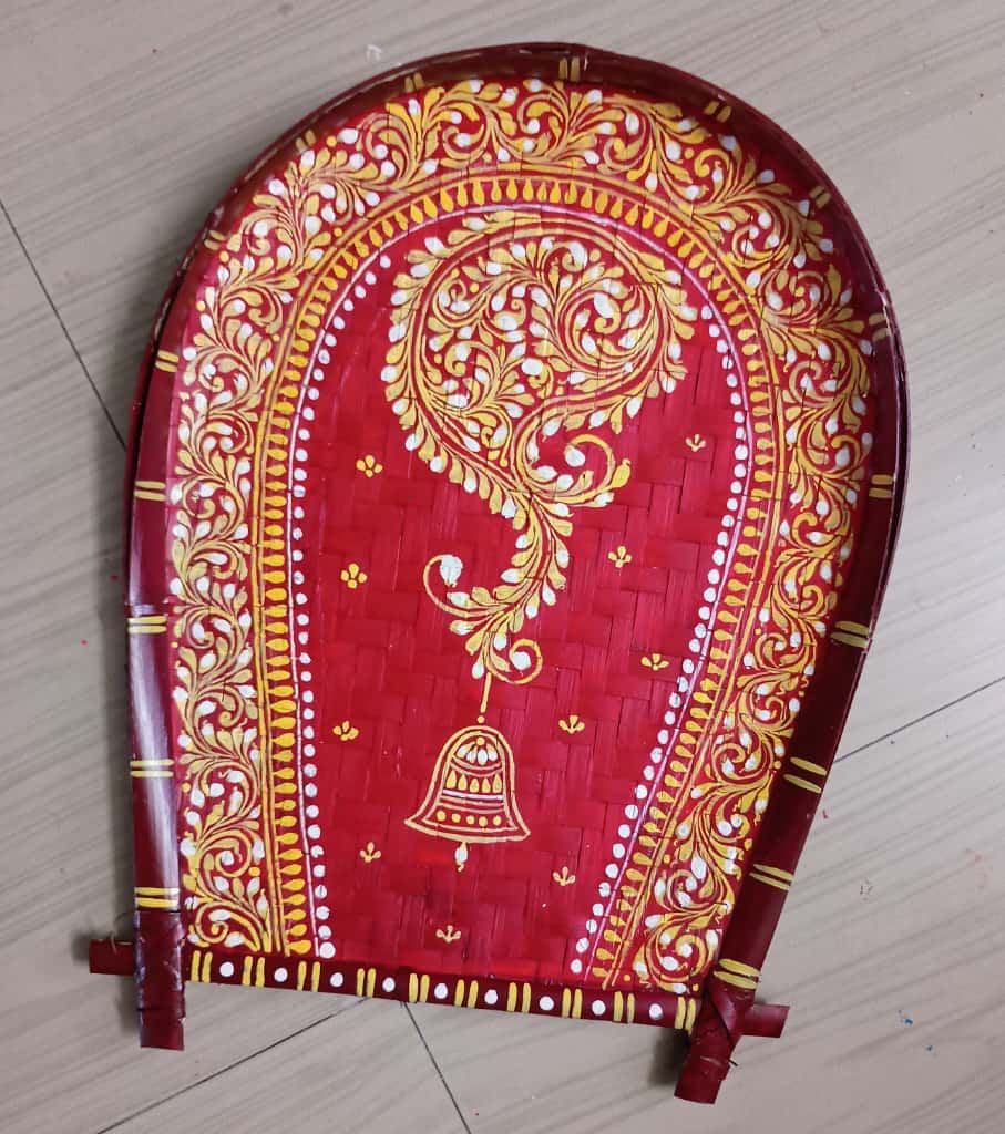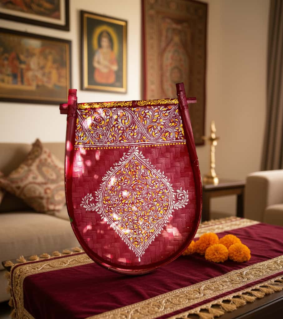 Authentic Hand-Painted Bamboo Kulo (14×11″) – Bengali Borondala Platter for Wedding Rituals & Decor ( for any type of customisation whatsapp us 8100384587 )