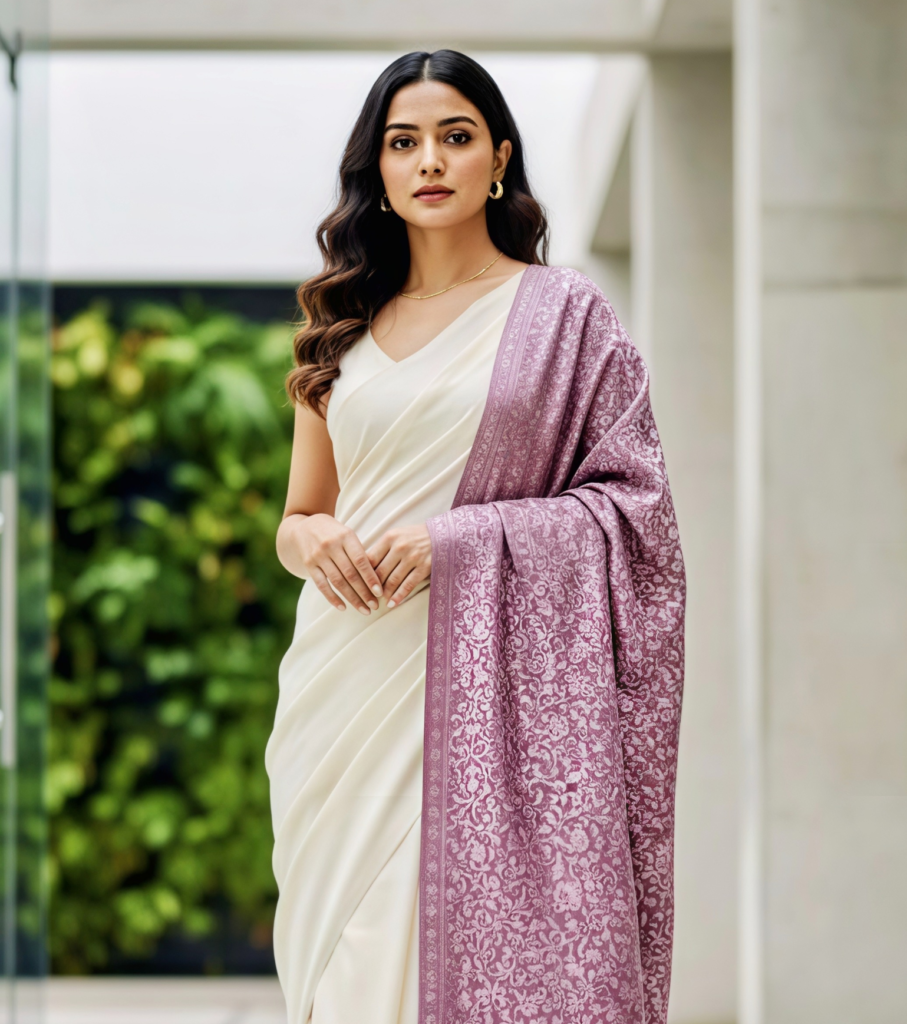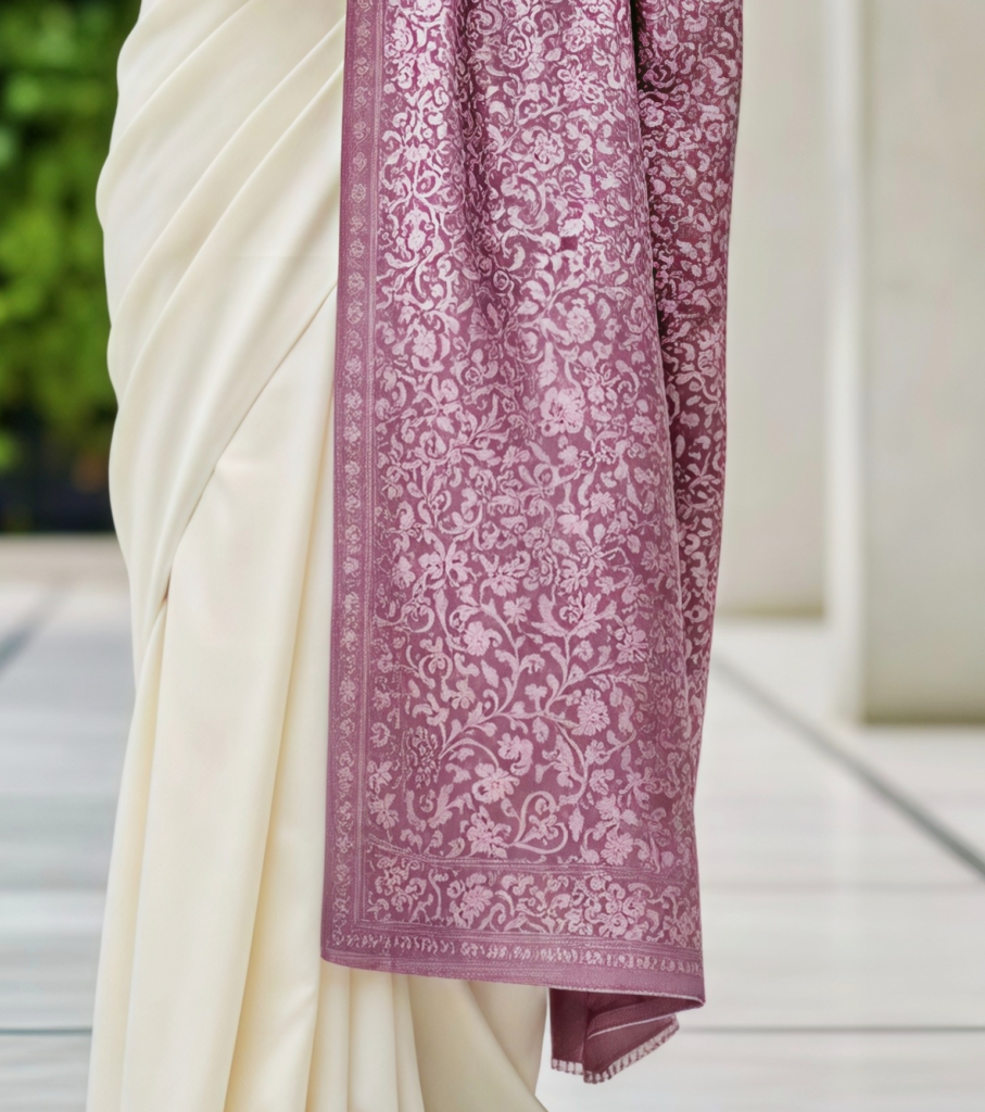 Elevate your ensemble with this exquisite Mauve and Silver Floral Jacquard Stole. Woven with precision to create a lustrous, self-textured masterpiece, this wrap offers a cashmere-soft touch and a regal drape. Perfect for weddings, evening galas, or adding a touch of sophistication to your daily wear, it is the ultimate accessory for the modern woman who cherishes timeless elegance.